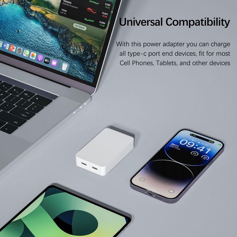 Simultaneous Charging: Supports charging two devices at once (e.g., smartphone + laptop, or tablet + earbuds), ideal for users with multiple gadgets.